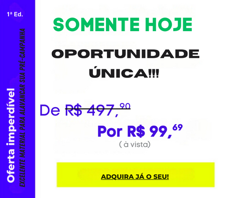 Para te alavancar nesta disputa, preparamos um e-book, com conteúdo exclusivo, e que jamais alguém te mostrou essas preciosas informações. Com linguagem clara e objetiva, você se apoderará, - de modo rápido e cirúrgico -, de um conteúdo digital, que te possibilitará a tomar posse de sua vitória, de qualquer dispositivo eletrônico, e assim, sair na frente de muitos pré-candidatos.